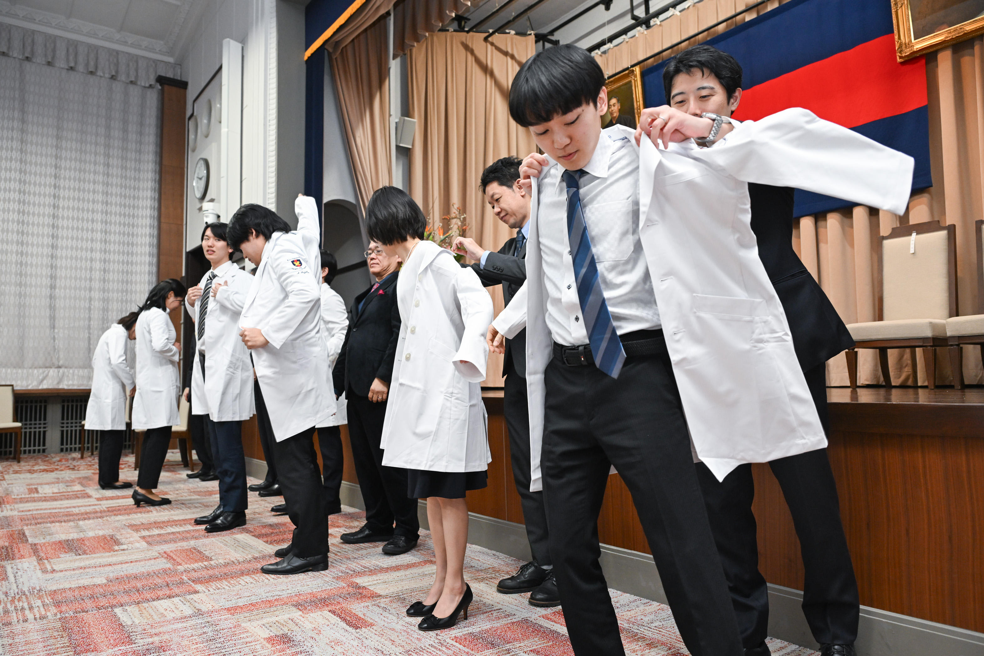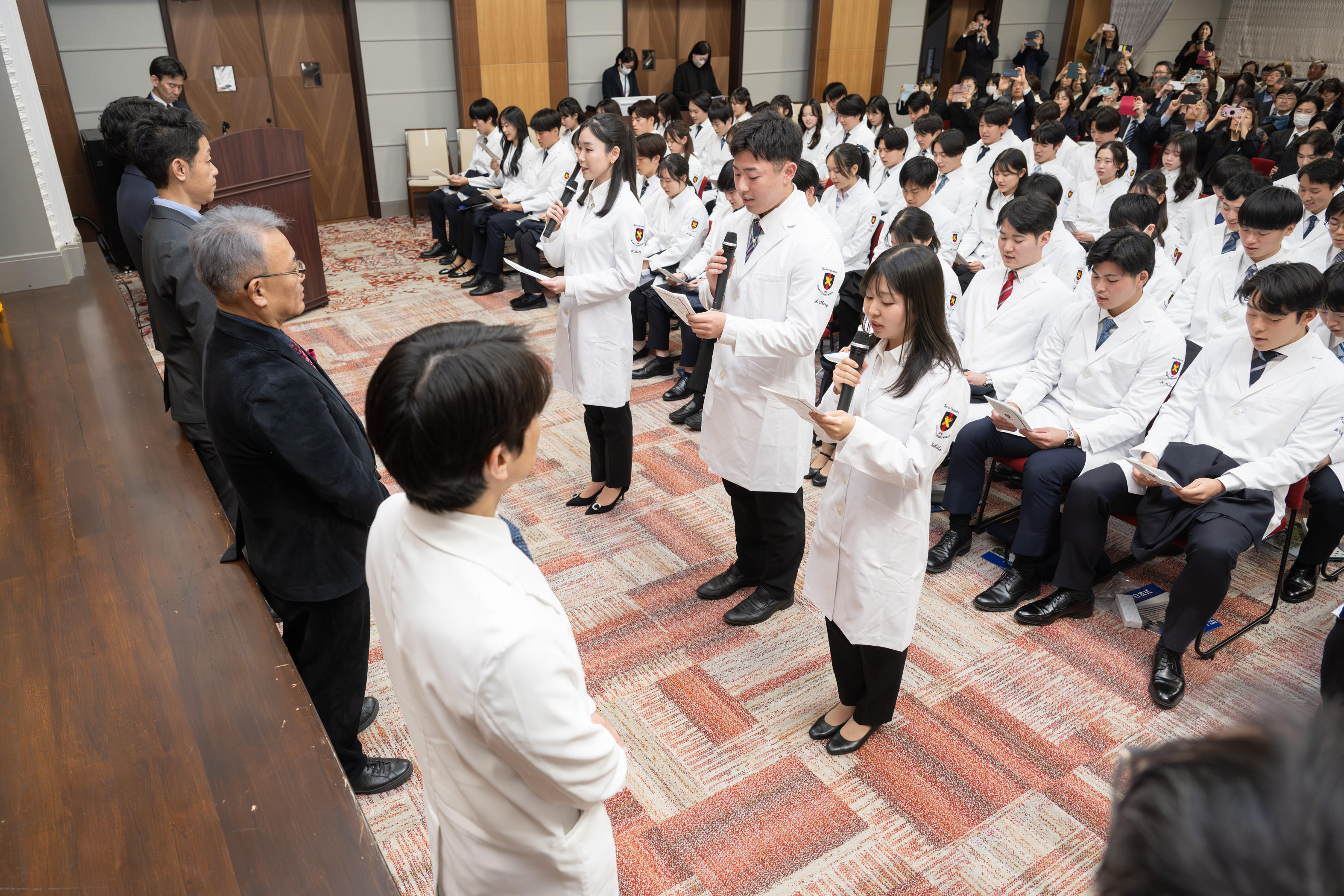自分の名前が刻まれた真新しい白衣を着た学生たちは、患者さんへの思いやりと奉仕の精神を持ち、患者さんから信頼される医師を目指し、新たな一歩を踏み出しました。