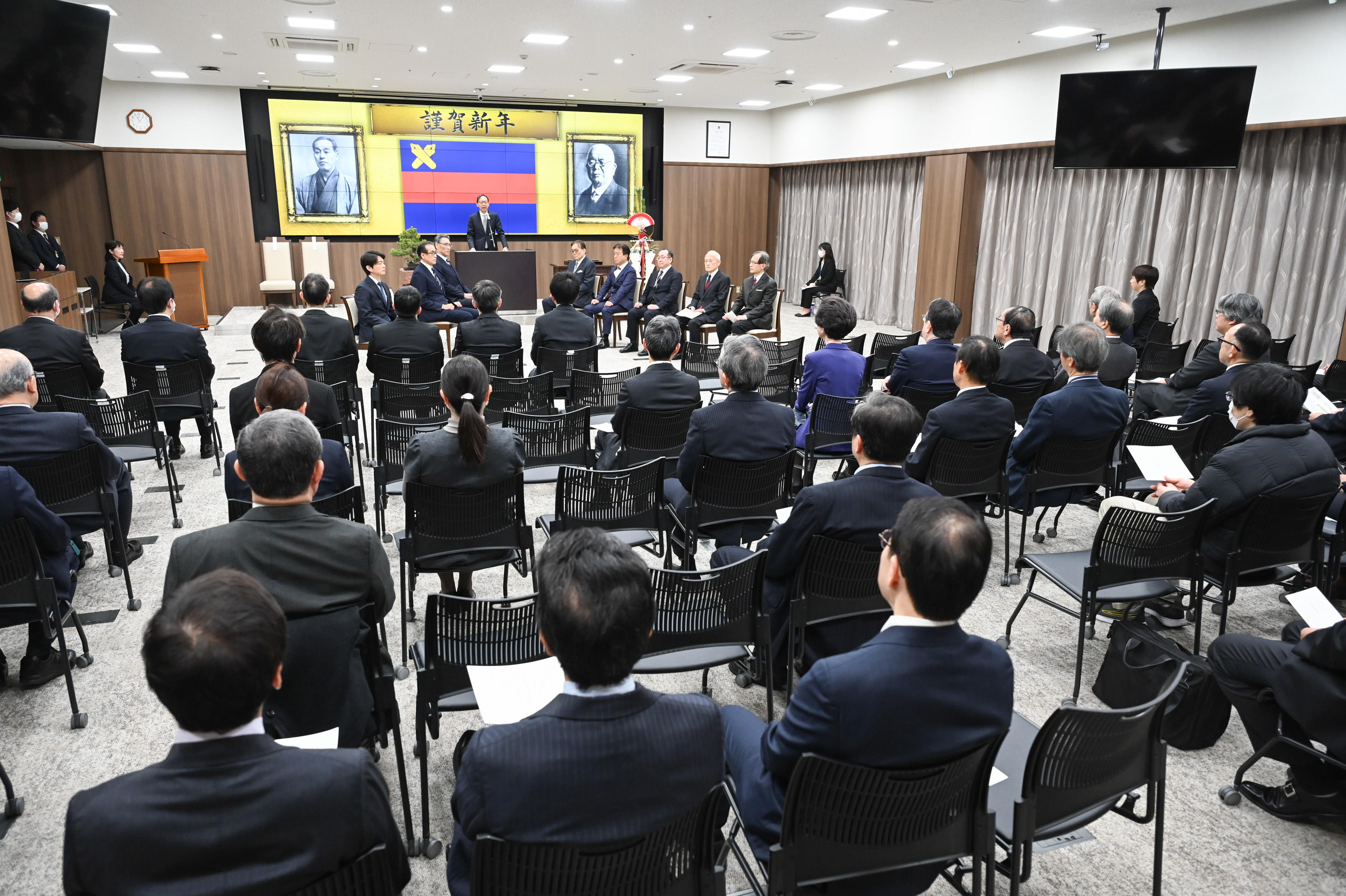 本年は、1月5日(月)に、慶應義塾大学病院2号館11階の大会議室で開催され、式典の様子はZoomウェビナーでも生配信しました。